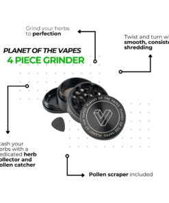 Grind and shred your herbs to perfection with a durable and consistent shredder. The POTV 4 Piece Grinder comes with a grinding plate and lid, an herb catcher, and a bottom pollen catcher to collect the good stuff. Pollen scraper included.