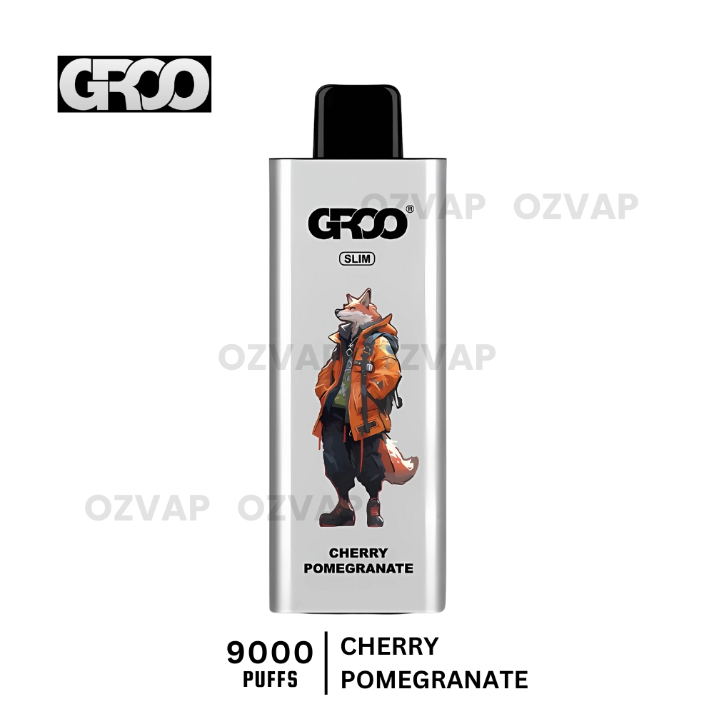 Elevate your vaping experience with GROO Slim 9000 Puffs Cherry Pomegranate. Order now and enjoy the irresistible mix of bold cherries and juicy pomegranates in every draw!