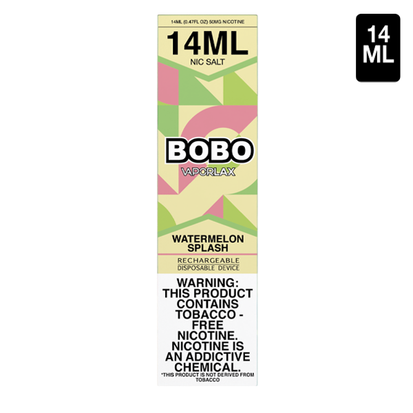 The BOBO Watermelon Splash has a sleek and compact design. Dimensions and exact materials are available upon request. Remember, this product contains nicotine, an addictive chemical. Please vape responsibly and keep out of reach of children.